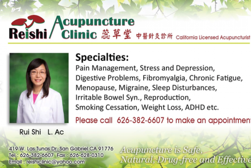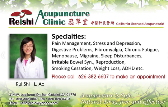 施蕊 – Reishi Acupuncture Clinic-626 382 6607