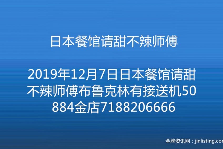 日本餐馆请甜不辣师傅布鲁克林有接送机50 884金店7188206666