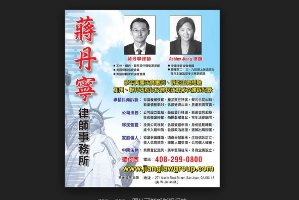 介紹:蔣丹寧律師: 1993 年獲得中國律師執照,從事合同及外商投資實務,1998 年取得加州,聯邦區法院北加州地區,聯邦第九巡迴上訴法院執業資格。 2004 年取得聯邦第三巡迴上訴法院及聯邦法院賓州中區執業資格。擁有聯邦第九巡迴上訴法院及聯邦移民上訴法庭勝訴紀錄。