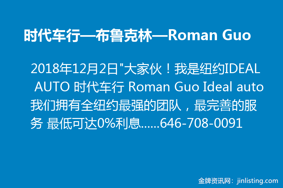 “大家伙!我是纽约IDEAL AUTO 时代车行 Roman Guo