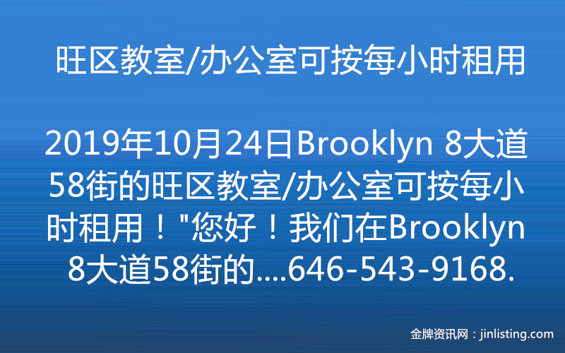 旺区教室/办公室可按每小时租用! 646-543-9168