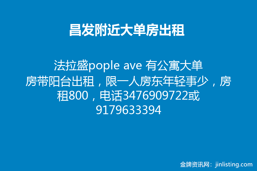 法拉盛pople ave 有公寓大单房带阳台出租,近超市,限一人,年轻人,学生优先,房东年轻事少,房租800,电话3476909722或9179633394,电话不通可短信