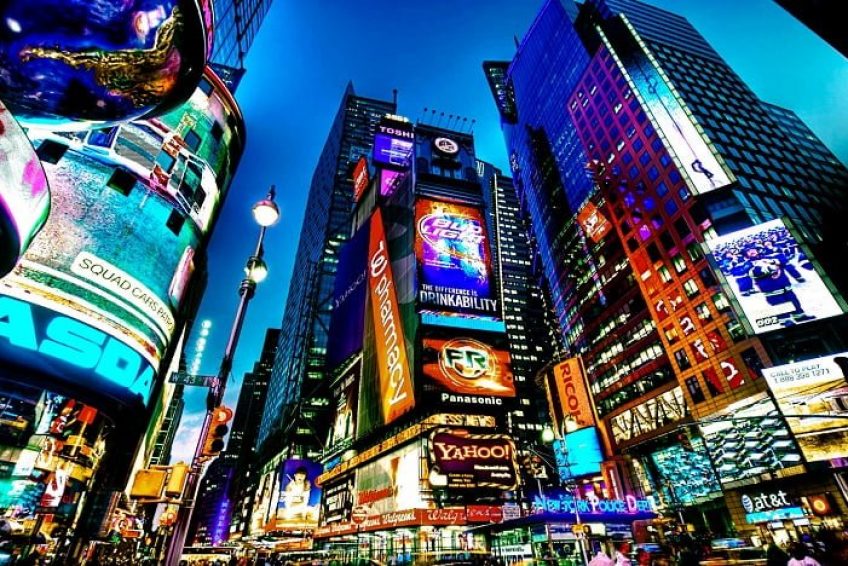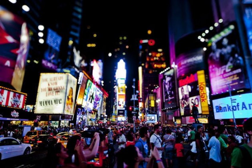 美国纽约曼哈顿的一个商业中心,位于百老汇大道第七大道会合处,范围由西42街延伸至西47街。时报广场的名称源自《纽约时报》(New York Times,又译为“纽约时代报”)早期在此设立的总部大楼,因此中文译名有时会根据报社而译为“时报广场”,或根据英文原名“Times”直译为“时代广场”。