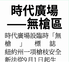 ● 臨時的「無槍」標誌將從9月1日在時代廣場周圍豎起。