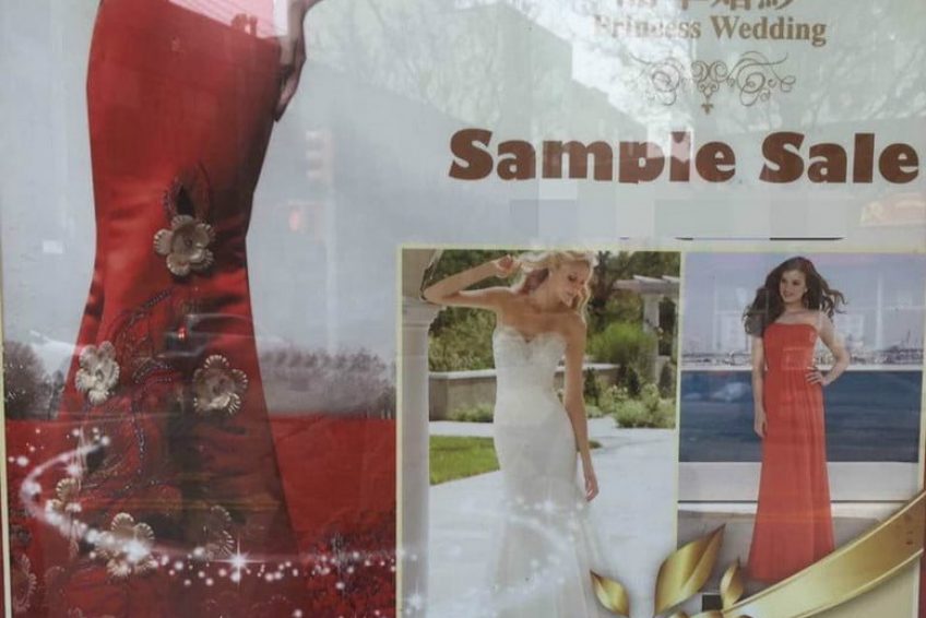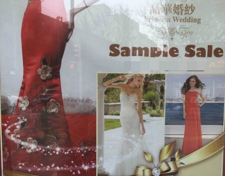 Sample Sale! 各类品牌礼服,旗袍,婚纱年度转售$60起,机不可失,叫上闺蜜一起选购!发拉盛晶华婚纱店,地址37-05 Prince Street (王子街)