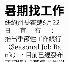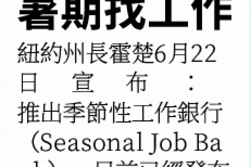 ● 紐約州勞工廳的季節性工作銀行是個免費求職平臺,開放企業在此發布職位空缺。