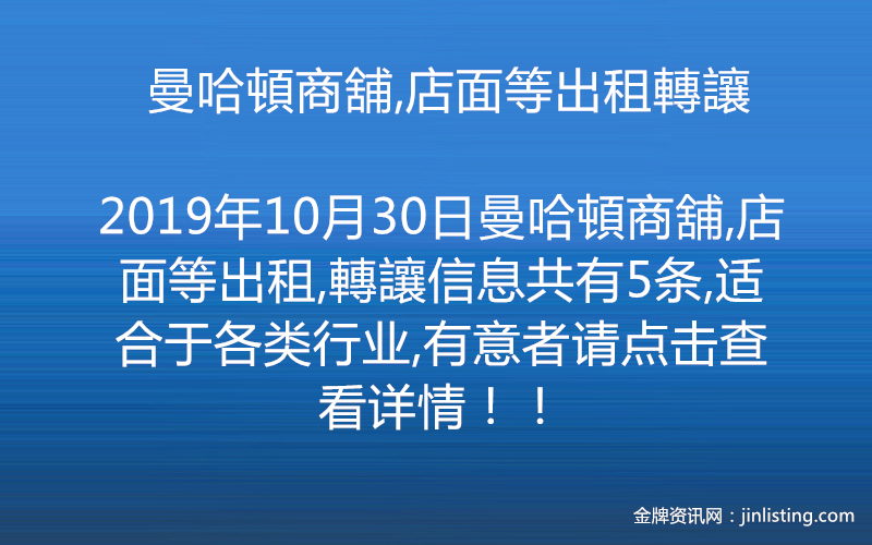 曼哈頓商舖,店面等出租轉讓