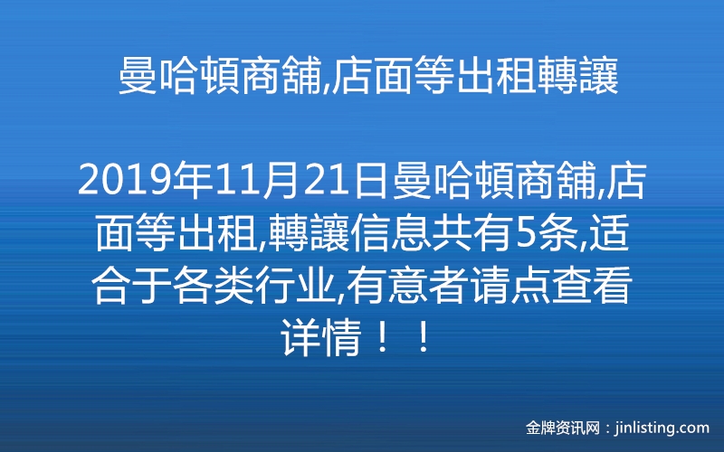 曼哈頓商舖,店面等出租轉讓
