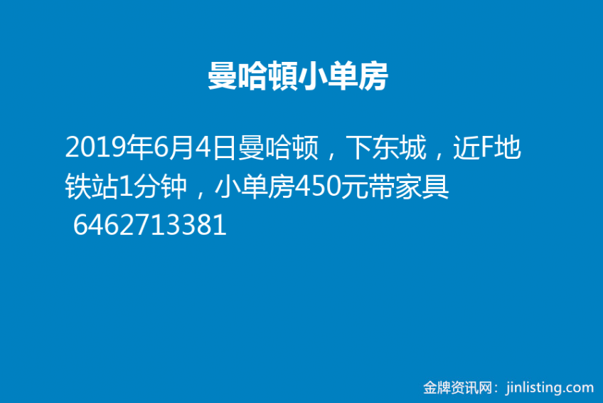 曼哈顿,下东城,近F地铁站1分钟,小单房450元带家具 6462713381