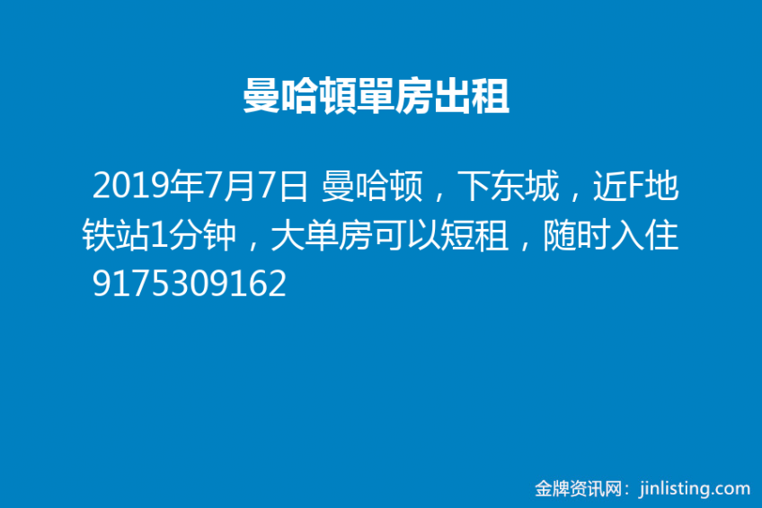 曼哈顿,下东城,近F地铁站1分钟,大单房可以短租,随时入住 9175309162