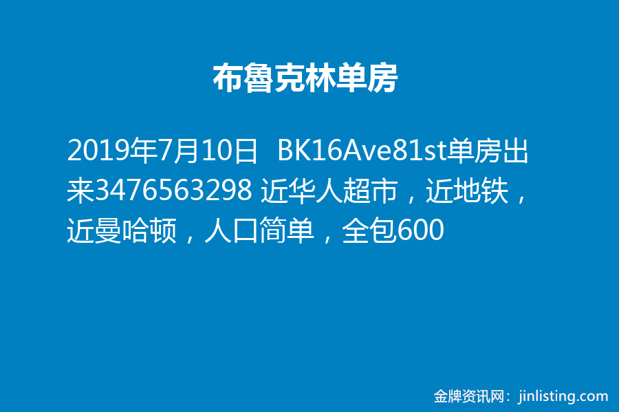 BK16Ave81st单房出来3476563298 近华人超市,近地铁,近曼哈顿,人口简单,全包600