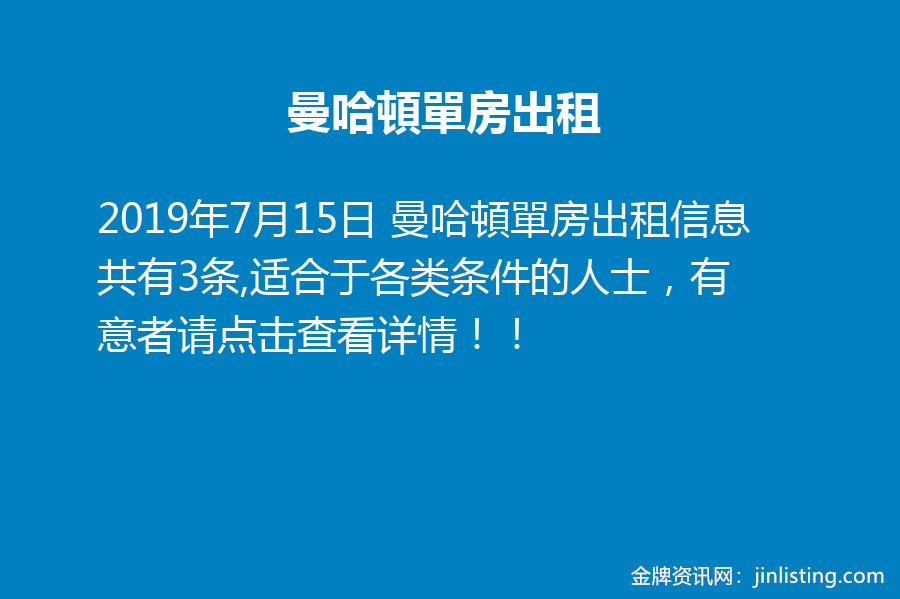 2.唐人街有房間出租 “合单身男 .女留學生愛卫生 .清洁.地方近地铁.或巴士一分钟 方便上城上班人士有意者请来电:646-829-6539”