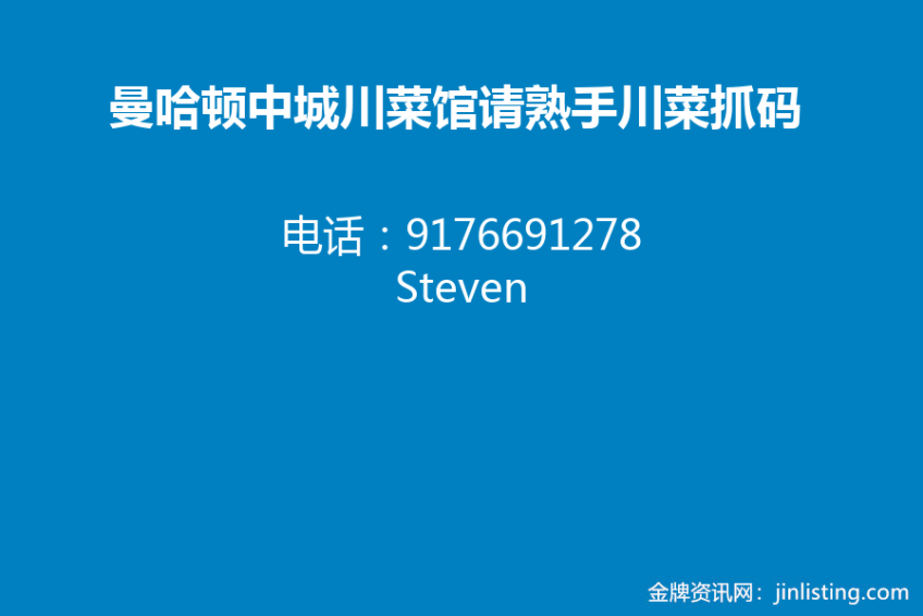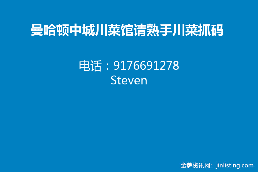 曼哈顿中城川菜馆请熟手川菜抓码 电话:9176691278 Steven