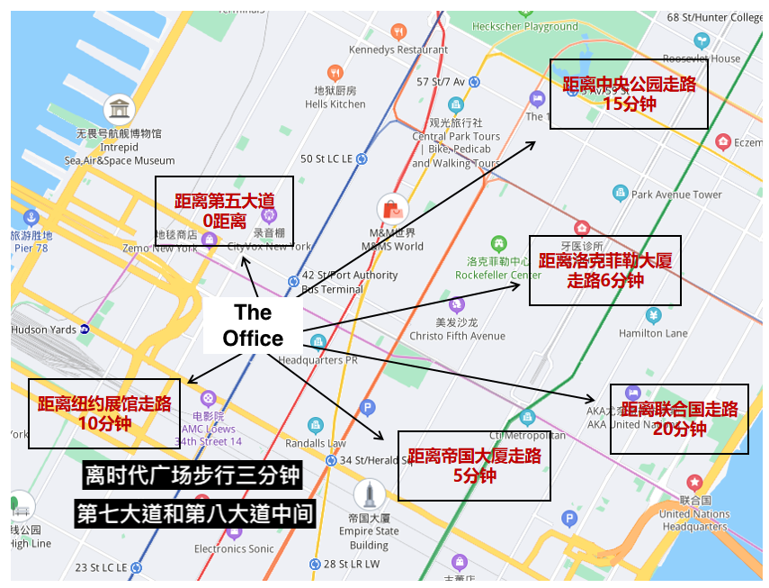 曼哈顿中城核心地带办公出租 離時代廣場3分鐘