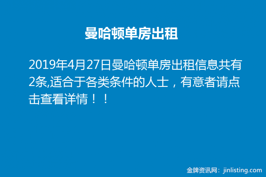 “曼哈顿公寓有单房丶床位出租,附近有1 丶A丶B丶C丶D地铁,到时代广场只需20分钟,楼下有多辆bus,可长丶短期出租,设备齐全, 快速WiFi,拎包入住! 联系电话:3478221461(可发短信,注明租房) 舒适的大床纯棉床品,让认床的你也能舒服的睡好觉,24小时热水,让你满满家的感觉,体验心灵在路上,身在“家”中。附近有中国餐,快餐店,炸鸡店,汉堡店,咖啡屋,酒吧, 图书馆,公园。 本人对购物有专长,可以推荐给你做好的都购物场所,如果需要可以给您做购物导游。保证让您以最少的价格,买到做满意的产品。”