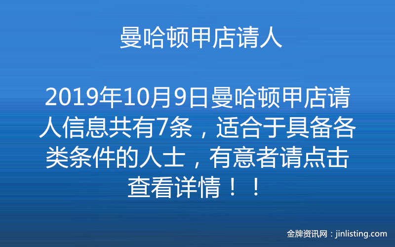 1.曼哈顿甲店区好、提成多小费好诚招熟手小工347-654-4764