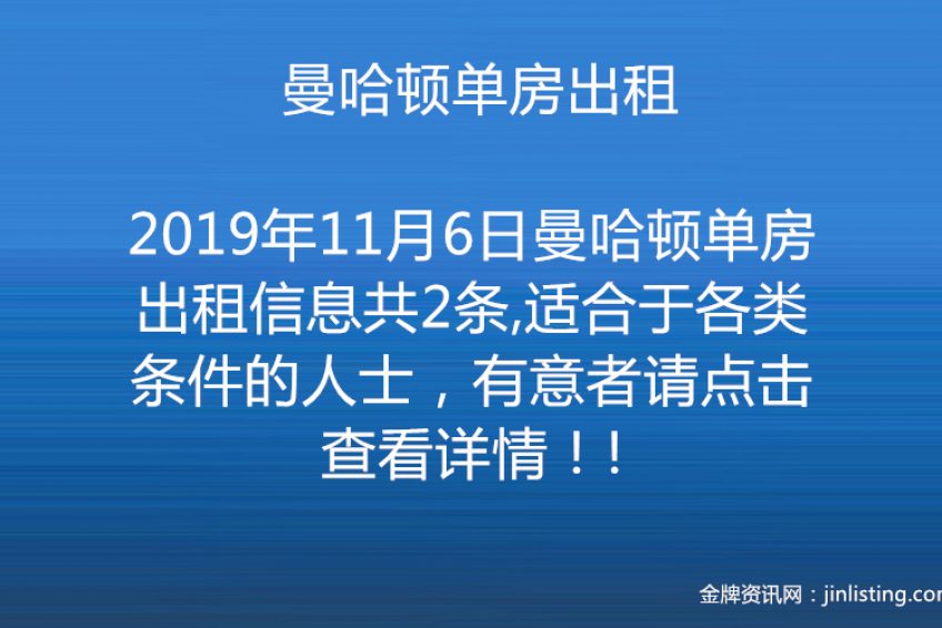 2. “曼哈顿唐人街单人房, 有窗户,月租每月$600干净景色好。找一位爱清洁有工作人士。 电话–646-642-5785”