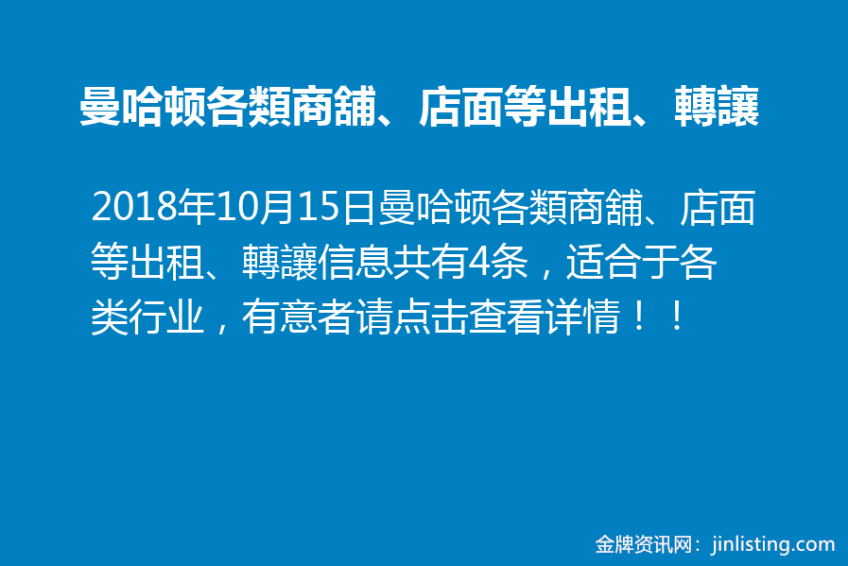 曼哈顿各類商舖、店面等出租、轉讓