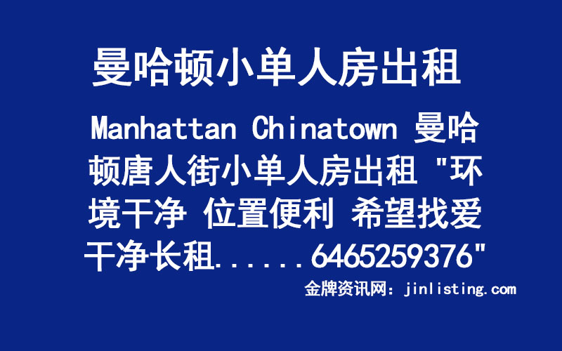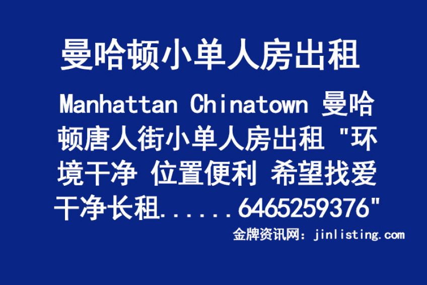Manhattan Chinatown 曼哈顿唐人街小单人房出租 “环境干净 位置便利