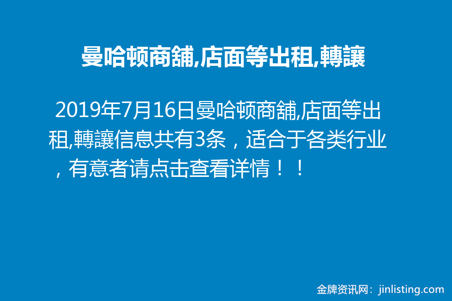 廉价转让曼哈顿中城按摩了老店转让,近3个地铁站和中央公园,老客多,小费高,还有年租约,接手就赚,3个房间,其中2个房间有洗手池,房租3800,转让费37000,因个人原因忍痛转让,签租约需看大牌。 9173463676