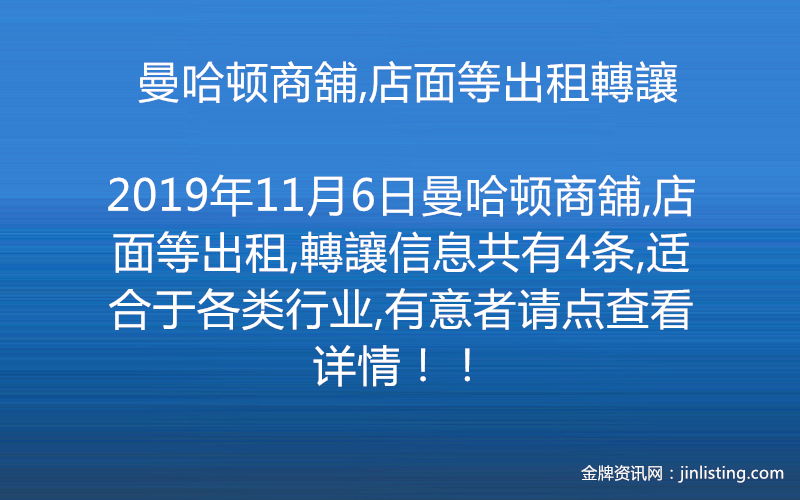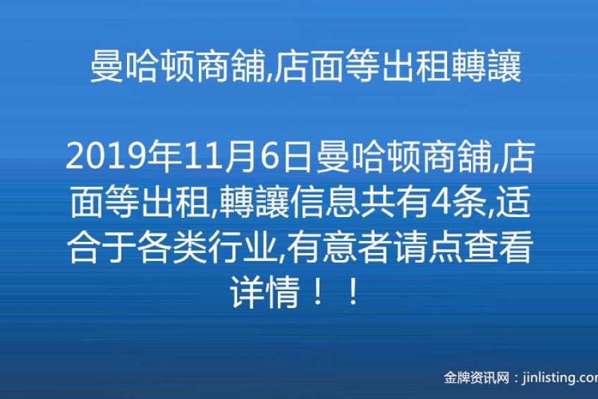 曼哈顿商舖,店面等出租轉讓