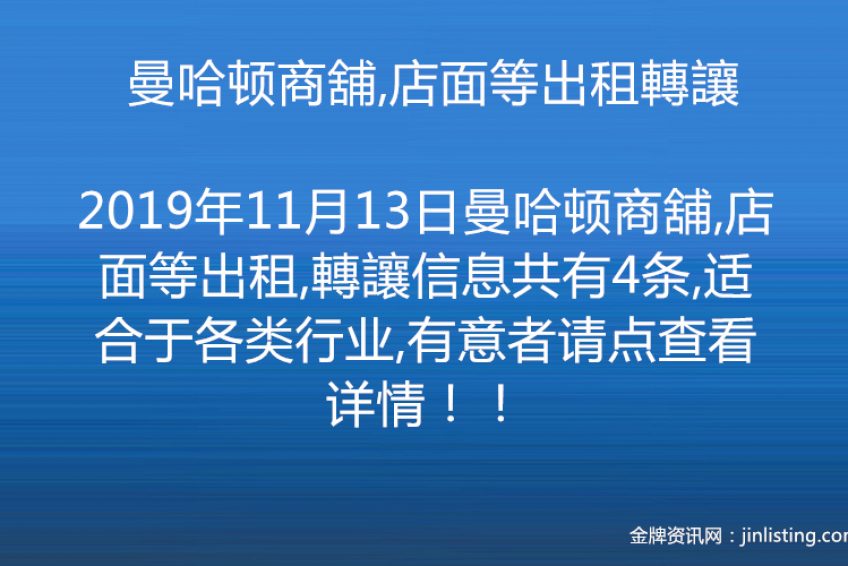 曼哈顿上西区餐馆生意转让$59万 “off market 曼哈顿上西区亚洲餐馆转让. 所有用具约3年新. 2个basement(2500sq ft + 1500sq ft) 地面面积2500-3000平方英尺,约60-70个座位 租金13700/月,每年3%涨. 租约还剩7年+5年option. 到期可续签10年+5年option 利润每年约为20万左右. 售价59万(可议). ———————————- off market: 纽约皇后区Queens Village外卖店转让。 转让费5.5万. 生意2万. 房租2500 租约还有9年,可重新签约. 有酒牌以及乐透. 适合小家庭经营 详情请联系经纪Jeff 718-678-4039”