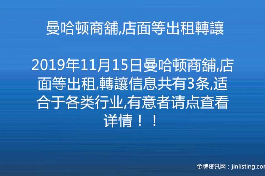 曼哈顿商舖,店面等出租轉讓