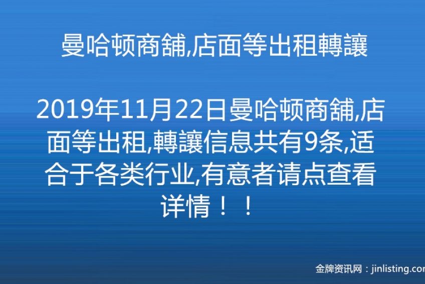 各类生意转让 “off market 曼哈顿上西区亚洲餐馆转让. 所有用具约3年新. 2个basement(2500sq ft + 1500sq ft) 地面面积2500-3000平方英尺,约60-70个座位 租金13700/月,每年3%涨. 租约还剩7年+5年option. 到期可续签10年+5年option 利润每年约为20万左右. 售价59万(可议). ———————————- off market: 纽约皇后区Queens Village外卖店转让。 转让费5.5万. 生意2万. 房租2500 租约还有9年,可重新签约. 有酒牌以及乐透. 适合小家庭经营 详情请联系经纪Jeff 718-678-4039 ———-以下限买家———————– 贝赛餐厅转让 高档住宅区繁华地段 裝修新古典风格 周边环境好,商业一条街,有超市,洗衣店、中国餐厅等成熟商業圈 無限潛力 店前后方便停車,绝佳地段接手就賺錢。 僅售16萬, 可议价 ——————————– 森林小丘日餐出售 稳定生意 接手即可挣钱,热闹地段,年收入120万, 店主多家店面,长年不在店,有心无力 仅售24万 ———————— 长岛市繁忙中餐馆转让。 15万可谈。 房租仅$4500含地税。 生意4.5万/月 签约还剩4年 option 5年 时尚装修 菜系繁多 有堂吃 外卖Uber 地处街角,客流量大,创业投资潜力无限。 附近绝无仅有的一家中餐馆 ————————— 未上市,皇后区Woodhaven酒庄街角店转让26万 热闹繁华地段 1:年生意84万, 2,房租仅$2900(全包) 3,店800-900尺加地下室400尺, 4,年纯利15万不到二年回本, 小投资大回报, 转行好选择, 数据诚信可靠欢迎看店运营。 ———————— 生意转让 赚钱好机会来了 法拉盛大型橱柜店转让可遇不可求 *生意40万/月( 利润高 ) (发展空间大,可添加卖 瓷砖 木地板 门 灯饰 等等) *大型停车场 *店铺总面积8000sqft *含1部切石头机器(价值6万多) *含1部Forklift铲车(价值3万多) *含8台电脑 1台电视 1台显示器 *Lease 还有4年(房东很好沟通) ———————— 49xx church Ave , Brooklyn ,NY 99c 店连货,生意$36000, 租$5500,包税 1600 SQF, lease 7 年, 价格连货都售$12万 ———————— 商业买卖For sale 137-xx Queens Blvd 繁忙99c ,净收入$96000, 租7200,税$1000, 连货售$235000 ———————- 159-xx hillside , jamaica, NY 11432 洗衣店转让 20台洗衣机,14 台烘干机,生意$204000/年, 仅售$12万 ————————- 11xx clarkson Ave,Brooklyn,NY 99c店连货出售 生意$23000, 租金便宜$3400,包税,1800 SQF, lease 5年, 全新装修 中央空调 马上接手 连货打包售$15万 ———————– 11xx clarkson ave.布鲁克林區炸鸡店出售。 30分钟车程到八大道/法拉盛。收入可观,潜力无限! 生意 3万5 店面2000呎 房租低 2200 还有九年租约。 月入一万。简单好上手 不会 老板教到会。价格 9万。随时可以看 ———————– Queens Sunnyside40街西人理发店转让700尺租金$2500,卖7万 ———————– 曼哈顿上东城E81街 西人眼镜店转让,750尺租金$5600,卖20万,有整套机器设备和货物 曼哈顿东E22街按摩店转让7万,干洗店转让2家共卖14万,每家租金均$3600, 曼哈顿东66街西人理发店转让900尺租金$6600,卖18.9万 曼哈顿的W55 街 日本拉面的售转让费35万2000尺租金1.9 万 ———————- 更多生意买卖请电经纪Jeff 718-678-4039”