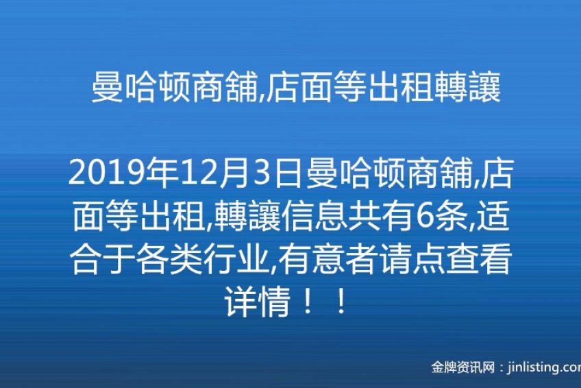曼哈顿上东区30年老店甲店转让 “出售曼哈顿上东区70街,30年老店,店附近有大医院,客源稳定,接手保证赚钱,因店主家有急变,忍痛割爱。甲店就在Q车地铁站附近。 一个拔毛房,3个脚池,4个手台,月租2100 ,普通手脚$35,胶手$34,SNS$45。80%-90%是现金。年营业额:12万 售价$35000 有意致电:646-823-6253”