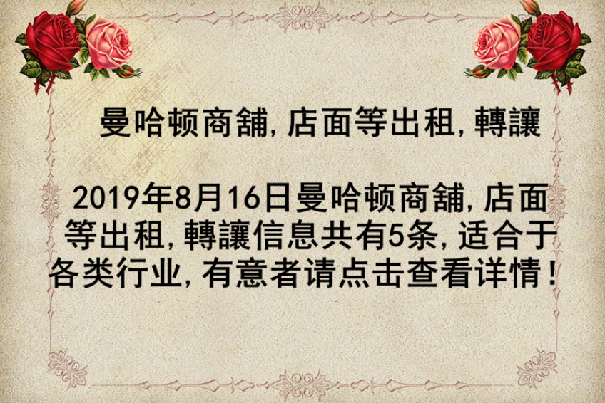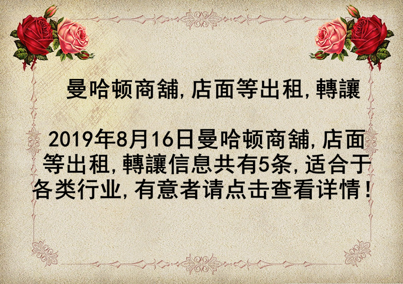 曼哈顿商舖,店面等出租,轉讓