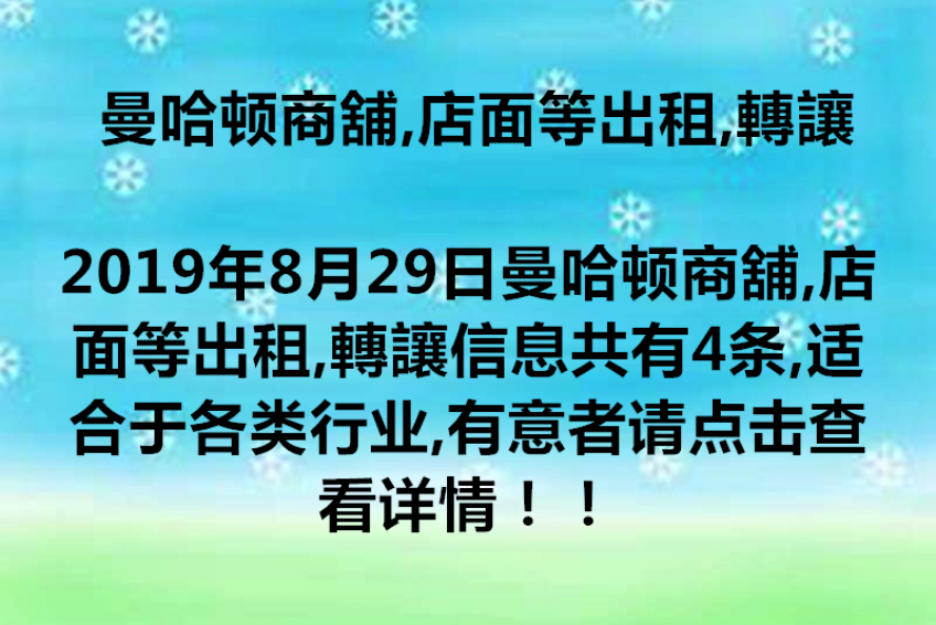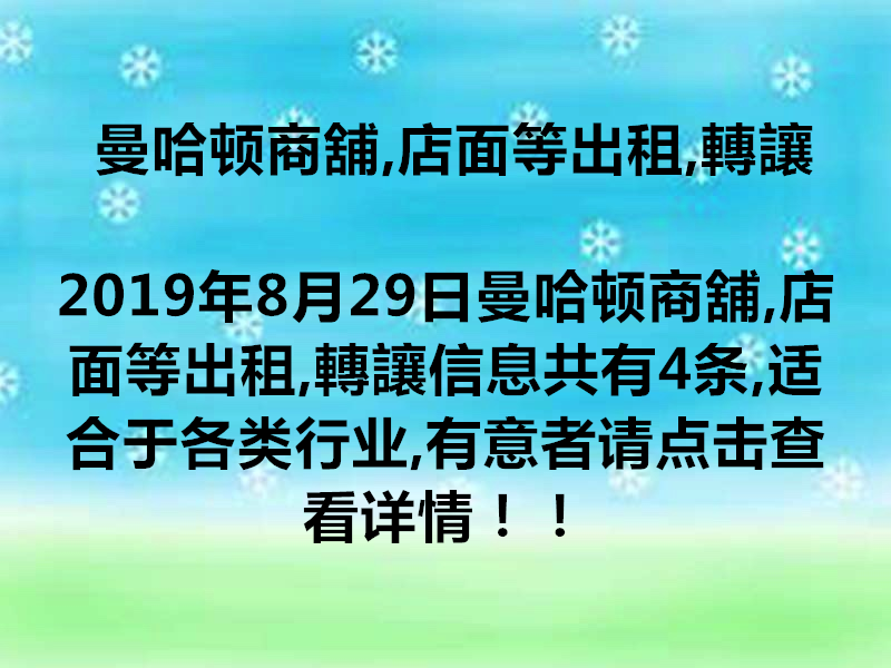 曼哈顿商舖,店面等出租,轉讓
