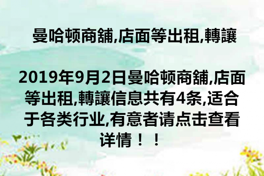 “廉价转让曼哈顿中城按摩老店,邻3个地铁站和中央公园,老客多,小费高,接手就赚,3个房间,其中2个房间有洗手池,房租3800,转让费37000,因个人原因忍痛急转,签租约需看大牌执照。 9173463676”