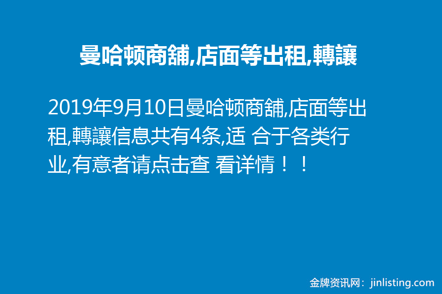 曼哈顿商舖,店面等出租,轉讓