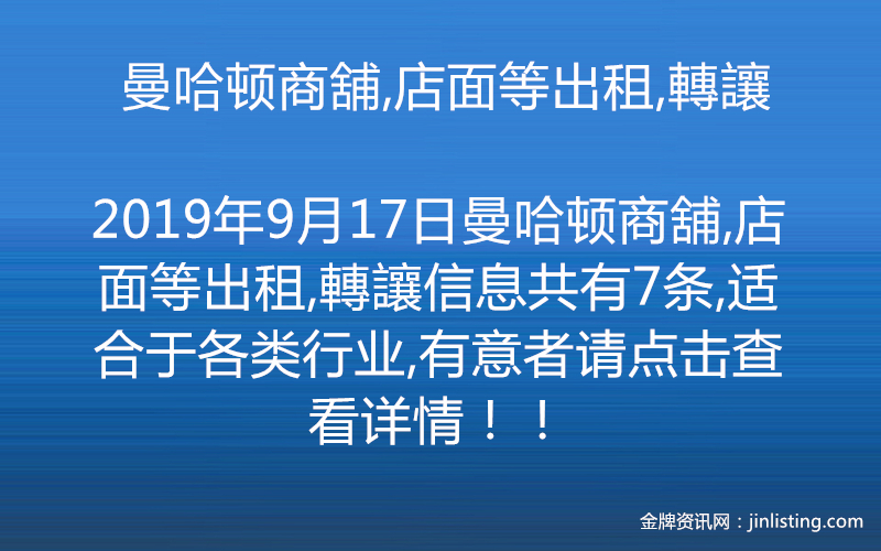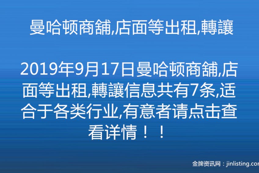 曼哈顿商舖,店面等出租,轉讓