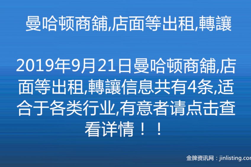 廉价转让曼哈顿中城按摩老店,邻3个地铁站和中央公园,老客多,小费高,还有近4年的租约,接手就赚,3个房间,其中2个房间有洗手池,房租3800,转让费37000,因个人原因忍痛急转,签租约需看大牌执照。 9173463676