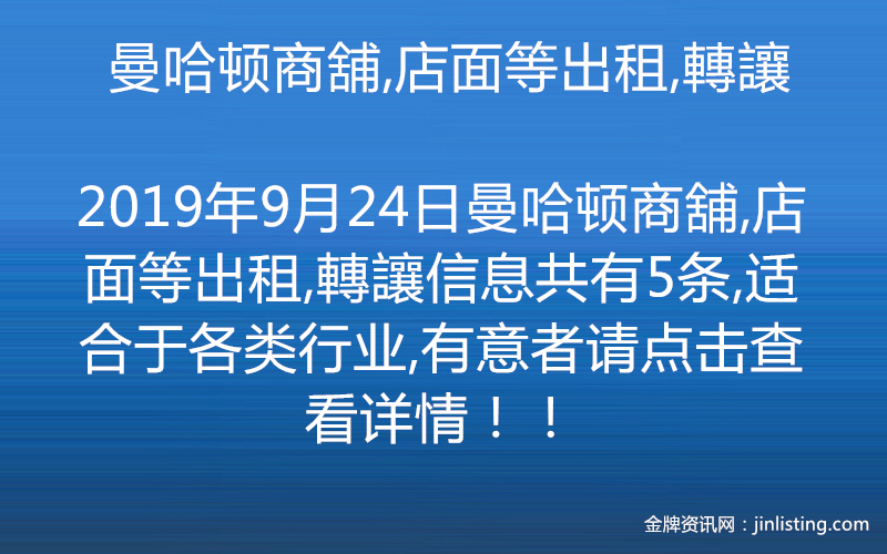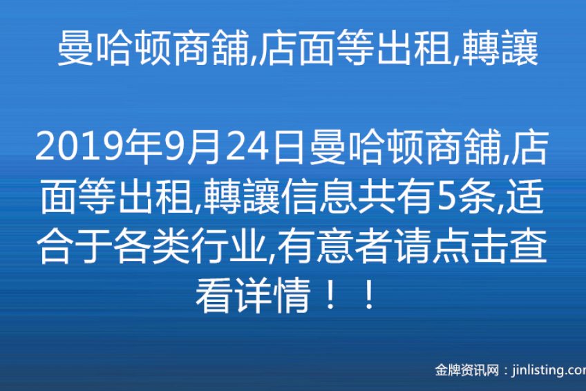 曼哈顿商舖,店面等出租,轉讓