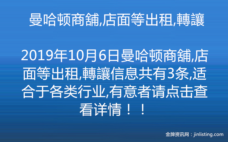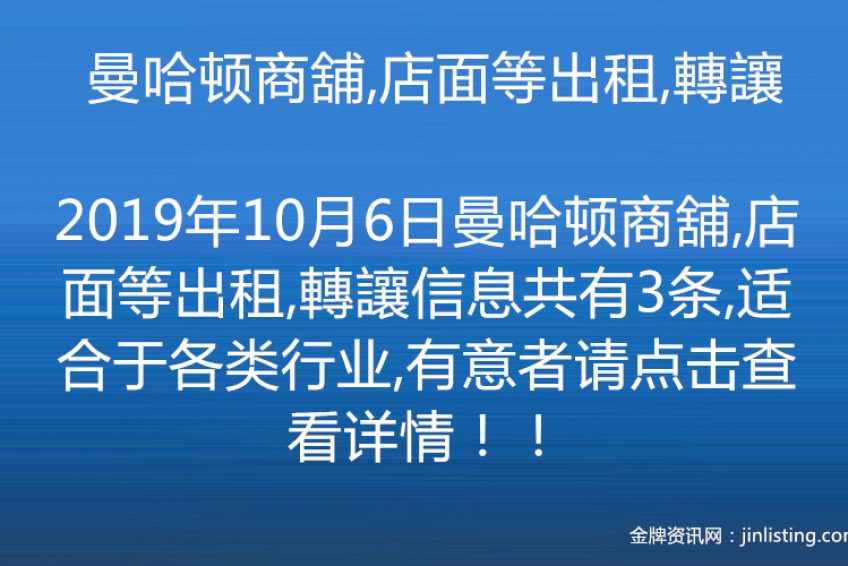 ❤️免中介费曼哈顿商铺低价出租 “有福同享,免中介费专业出租买卖曼哈顿住宅,办公室,旺铺,餐馆,仓库,干洗店。 1)曼哈顿时代广场的1 楼旺铺 1500尺 +1000尺 Basement $15000 适合各行各业 2)曼哈顿上东城E83St, 旺铺500尺+300尺 basement $5500,适合奶茶,点心,甜品店 3)Queens长岛市近地铁:N,W,7 车 Queensboro plza 豪华高楼耸立地区新楼店铺1627 尺 $7995 适合Deli店,干洗店,美甲店。 4)曼哈顿4,5,6,J,F 车City Hall 或EastBroadway 站全新商业楼 6 楼,适合寺庙,教会,老人院,同乡会,诊所 1700 尺 +1000尺阳台$6000,土库$3000 5)曼哈顿ABCDEF车West 4 站 商业2楼店铺,1300 SF,$8000 适合瑜伽教室 ,画廊,补习学校。 6) Timesquare, Rockefeller 大小办公室出租2100 SF 每尺$ 38。 7)Brooklyn 下城近曼哈顿独立倉库出租 5000尺 每尺 $24 8)曼哈顿上东区61街2Ave上富人区 店铺 600尺 租金$6000 各行各业均可”