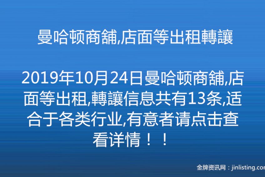 低价转让曼哈顿中城按摩老店,邻中央公园和3个地铁站,熟客多,小费高,还有近4年租约,转手就赚,3个房间,房租3800,转让费面商,需大牌执照。 9173463676