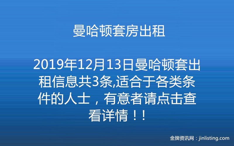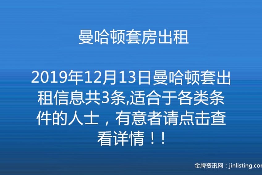 3. “曼哈顿单房出租 、一房一厅 价格便宜 曼哈顿新装修电梯楼近F地铁站附近单房,一房一厅 出租大窗户地点佳适合学生 或刚上班人士水电网全包有意请电7185171749”