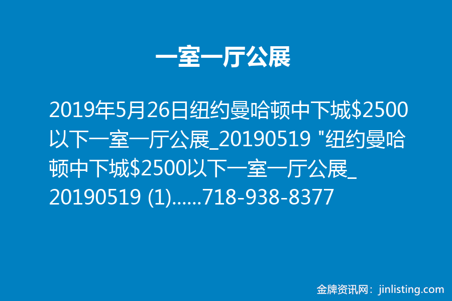 纽约曼哈顿中下城$2500以下一室一厅公展_20190519 “纽约曼哈顿中下城$2500以下一室一厅公展_20190519 (1) 纽约曼哈顿中城West 50st一室一厅出租_$2450/月包水暖 (2) 纽约曼哈顿下城一室一厅出租_$2350/月包水暖 (3) 纽约曼哈顿中城West 36st一室一厅出租_$2000/月包水暖 本周日(5/26)下午5:00公展。 咨询看房电话:718-938-8377 微信:Q612597 邮件:wendy@taichirealty.com”