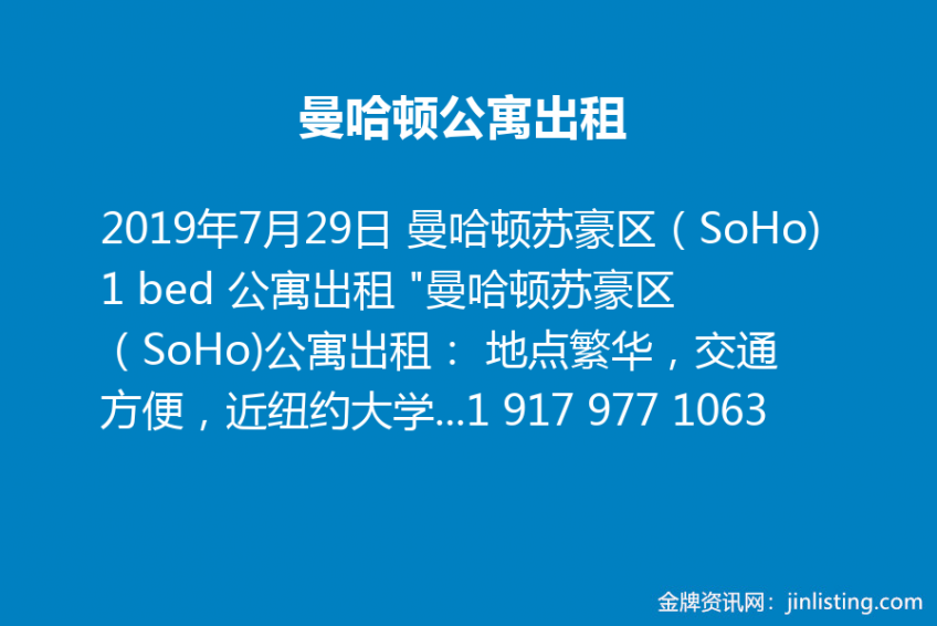 曼哈顿公寓出租 1 917 977 1063