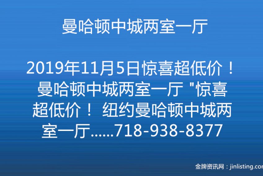 惊喜超低价!曼哈顿中城两室一厅 “惊喜超低价! 纽约曼哈顿中城两室一厅出租$2300/月包水暖 @West 36st & 10th Ave 近7地铁终点站,近全新开发的哈德逊广场。 安静安全,闹中取静超低价位楼梯公寓楼5楼。 装修新一大一小两个带门锁卧室,可吃饭有窗厨房厅。 入住手续简单,非常适合追求低价位学生或新工作人合租。 不带家具出租,一年签约,收佣金。 每天下午四点或其他时间可以预约看房. 咨询看房电话:718-938-8377 微信:Q612597 公司网站:www.taichirealty.com”