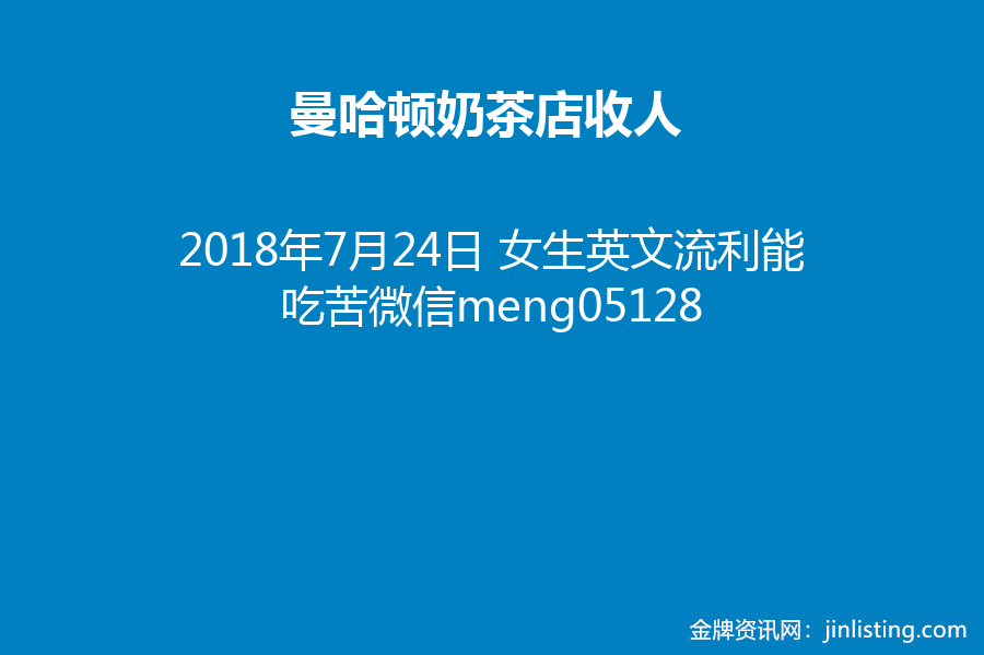曼哈顿奶茶店收人 女生英文流利能吃苦微信meng05128