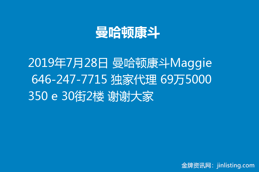 曼哈顿康斗Maggie 646-247-7715 独家代理 69万5000 350 e 30街2楼 谢谢大家