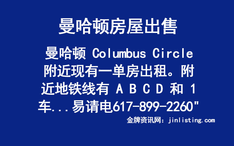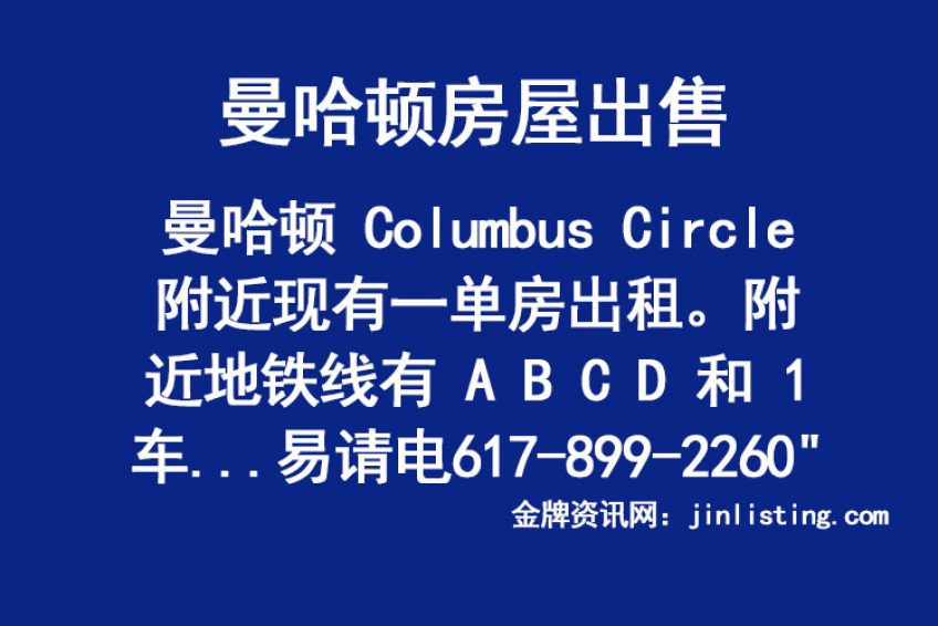 1br – 曼哈顿 Midtown West $800/Month (Midtown West) “曼哈顿 Columbus Circle 附近现有一单房出租。附近地铁线有 A B C D 和 1 车。 Columbus Circle shopping center 和中央公园都在附近。
