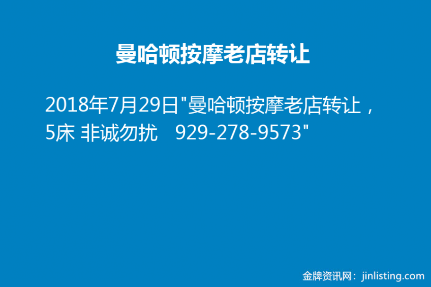 “曼哈顿按摩老店转让,5床 非诚勿扰