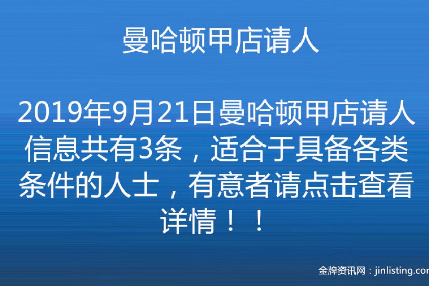Bronx甲店聘请熟手大工一名,法拉盛接送,车程25分钟。联系电话646-464-3705