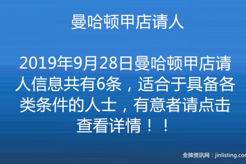 1.曼哈顿五大道中城高档甲店招熟手小工 小费好 抽成多 事少 有意者 3476940388