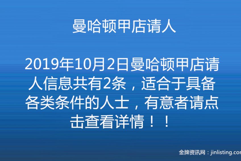 2.曼哈顿高级甲店白区,高薪诚请熟手全职男女小工,中工,下午工,生手勿扰,有意请电 3476978942