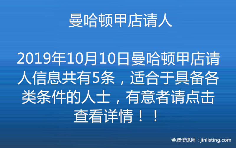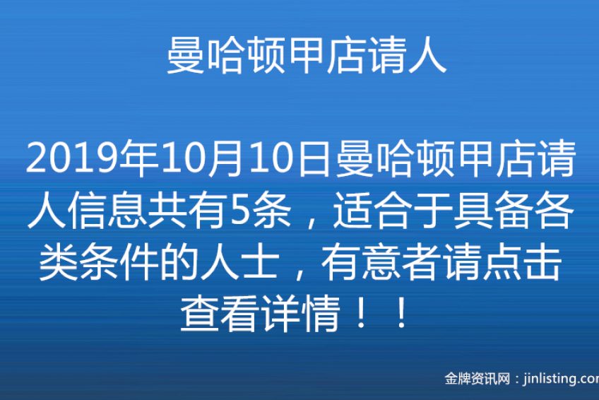 1.曼哈顿SPA甲店招聘熟手工。另有下午工5点至10点电3477033198